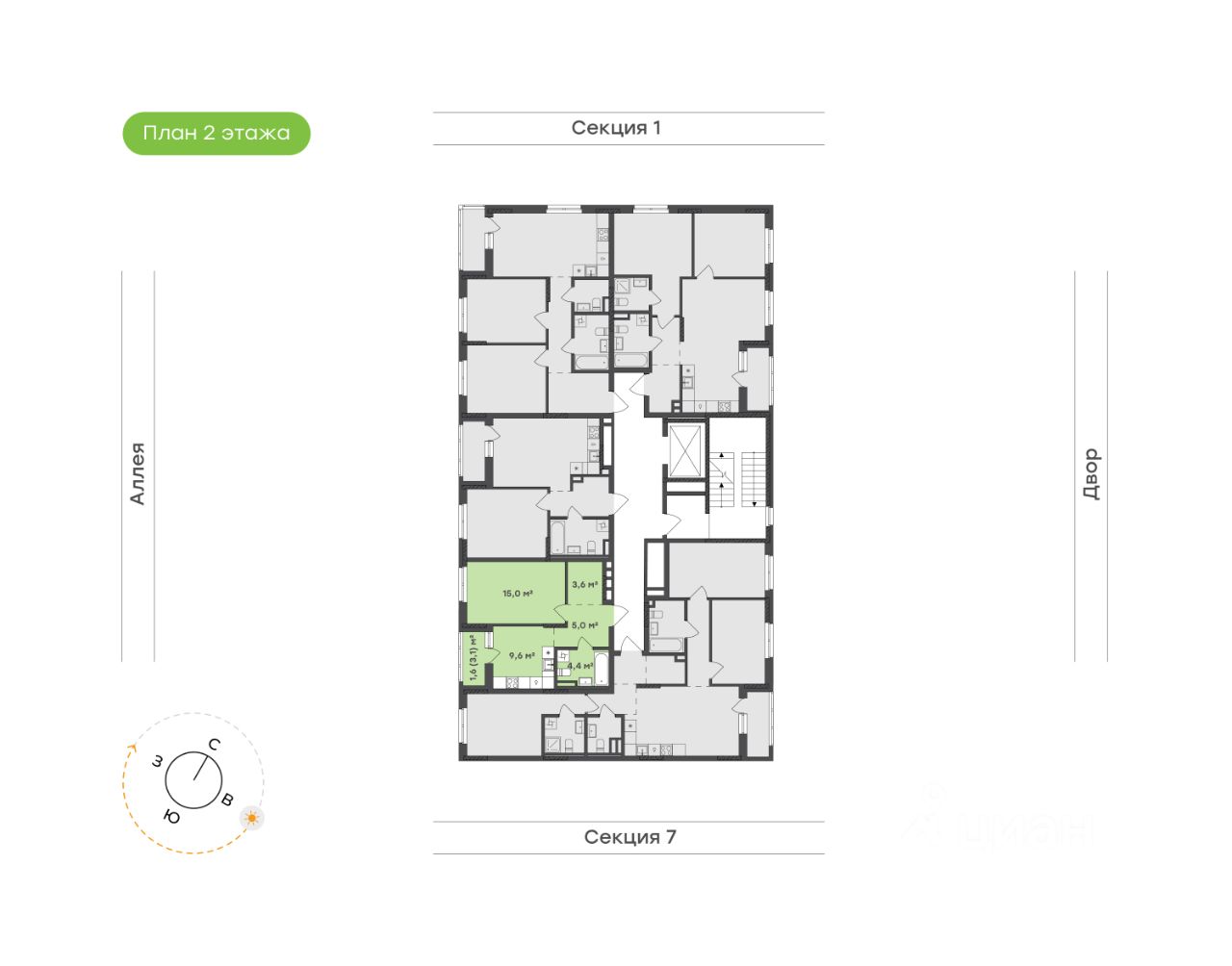 Отдельная кухня 9,6 м² — место, где захочется готовить и проводить уютные вечера. Выход на лоджию 3,1 м² открывает вид на зелёную аллею, наполняя пространство воздухом и естественным светом
