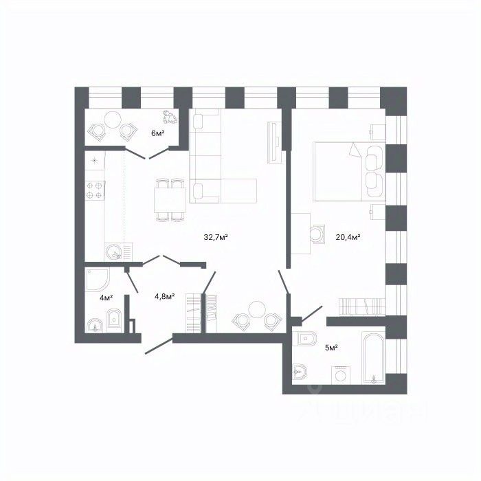 Жилая площадь36 м2