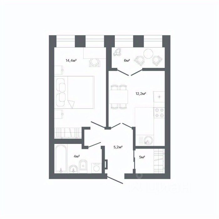 Общая площадь42,6 м2