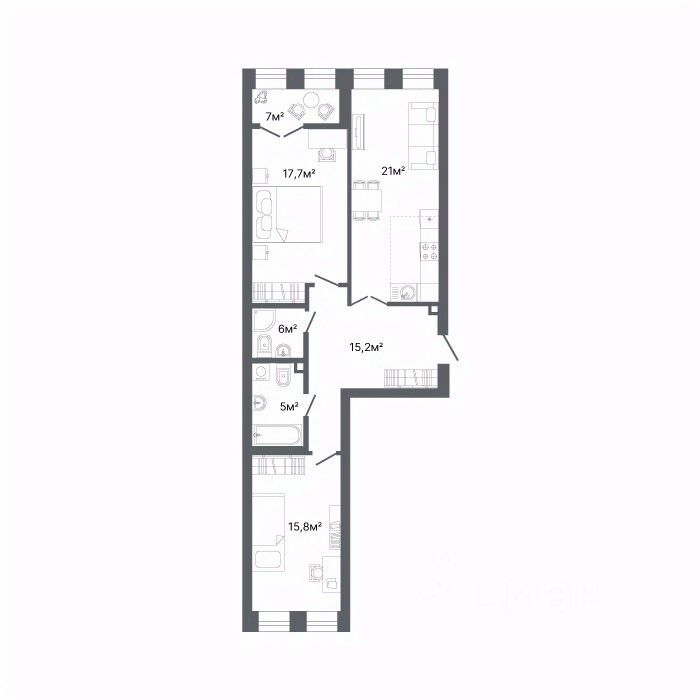 Кухня21,3 м2