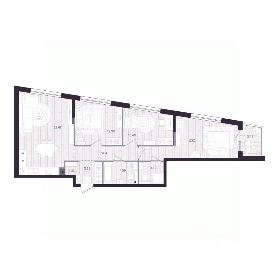 Продаётся 3-комнатная квартира в строящемся доме (Дом 1.1), срок сдачи: II-кв. 2028, общей площадью 85.65 кв.м., на 16 этаже. Новый жилой комплекс ''Тетро'' от застройщика ''Люди'' расположен по адресу: г. Екатеринбург, улица Героев России.
