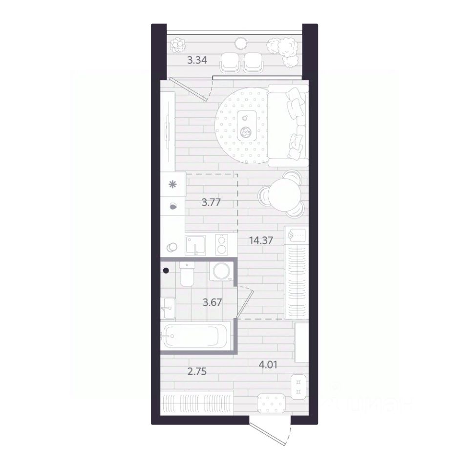 Продаётся студия в строящемся доме (Дом 1.1), срок сдачи: II-кв. 2028, общей площадью 30.24 кв.м., на 16 этаже. Новый жилой комплекс ''Тетро'' от застройщика ''Люди'' расположен по адресу: г. Екатеринбург, улица Героев России.