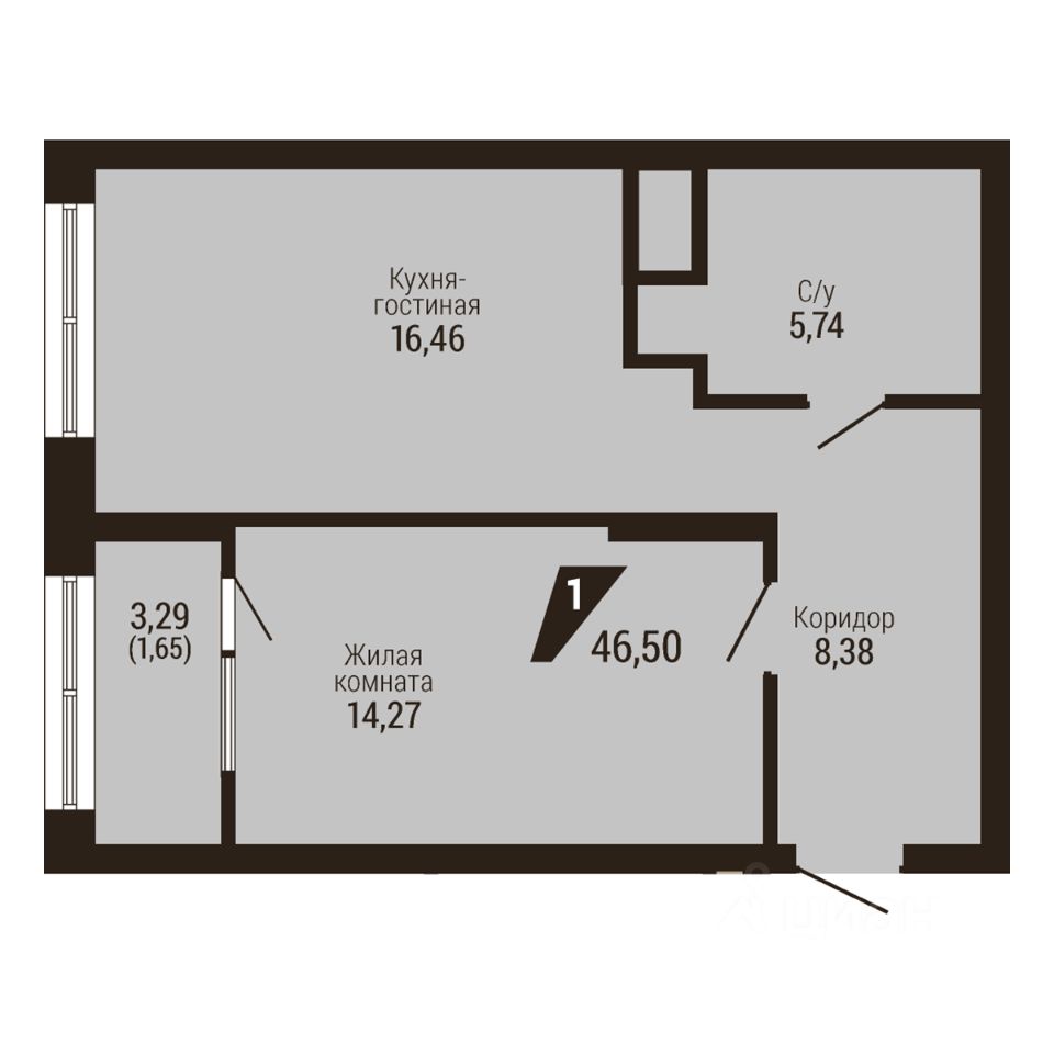 Общая площадь46,5 м2