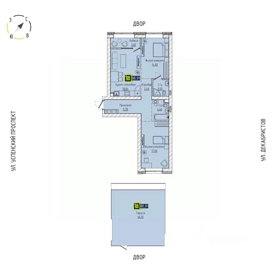 Общая площадь86,91 м2