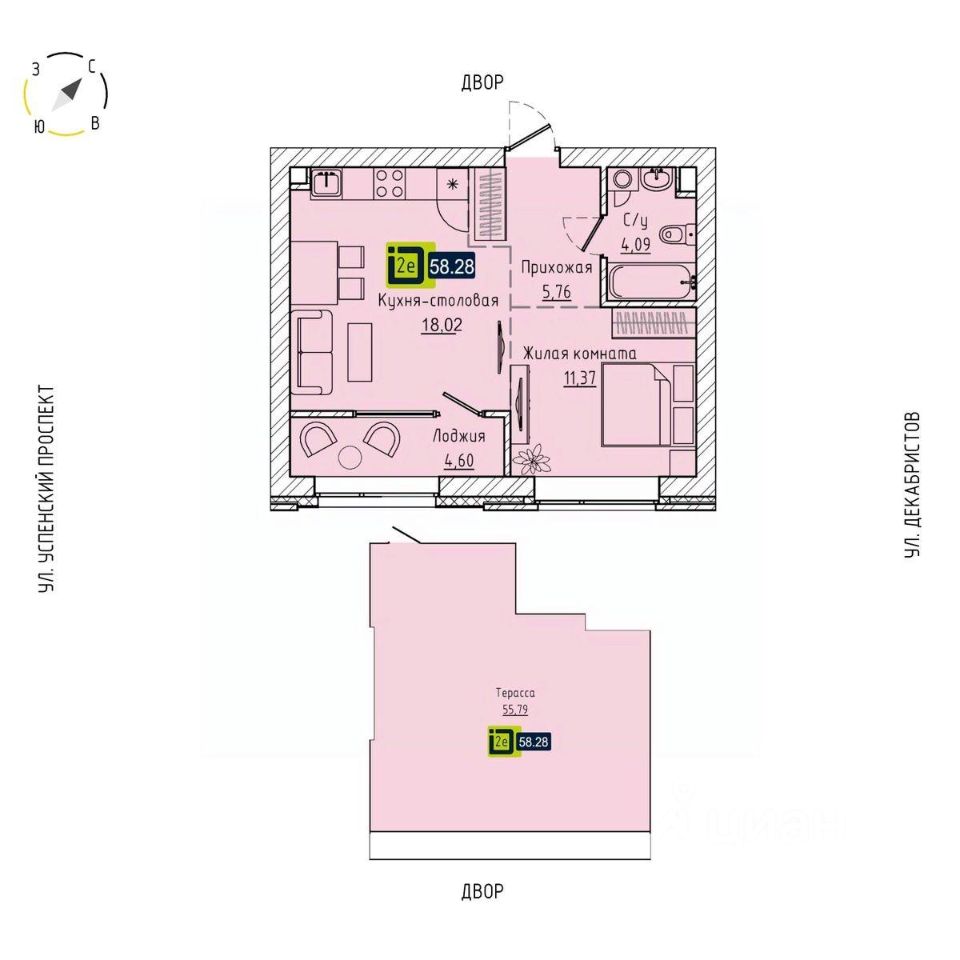 Общая площадь58,28 м2
