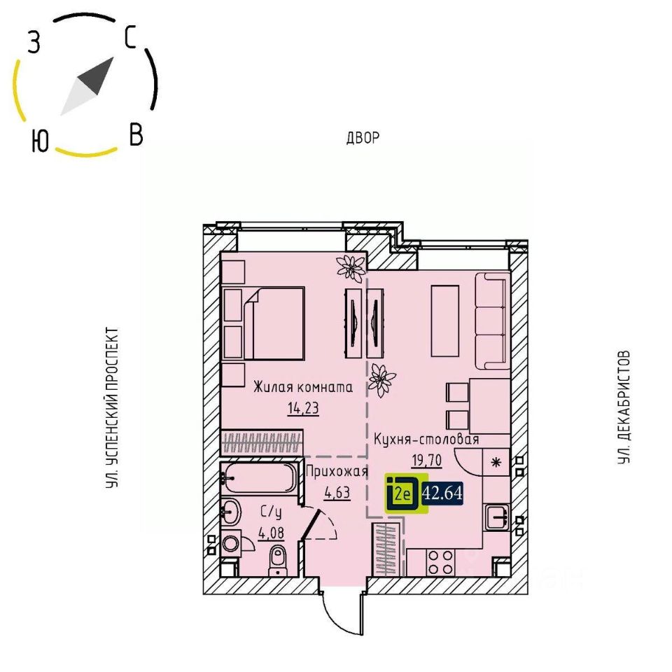 Общая площадь42,64 м2