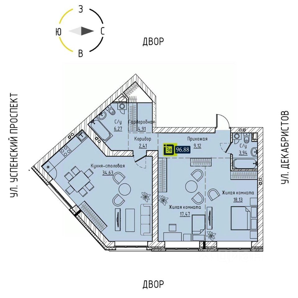 Общая площадь96,88 м2