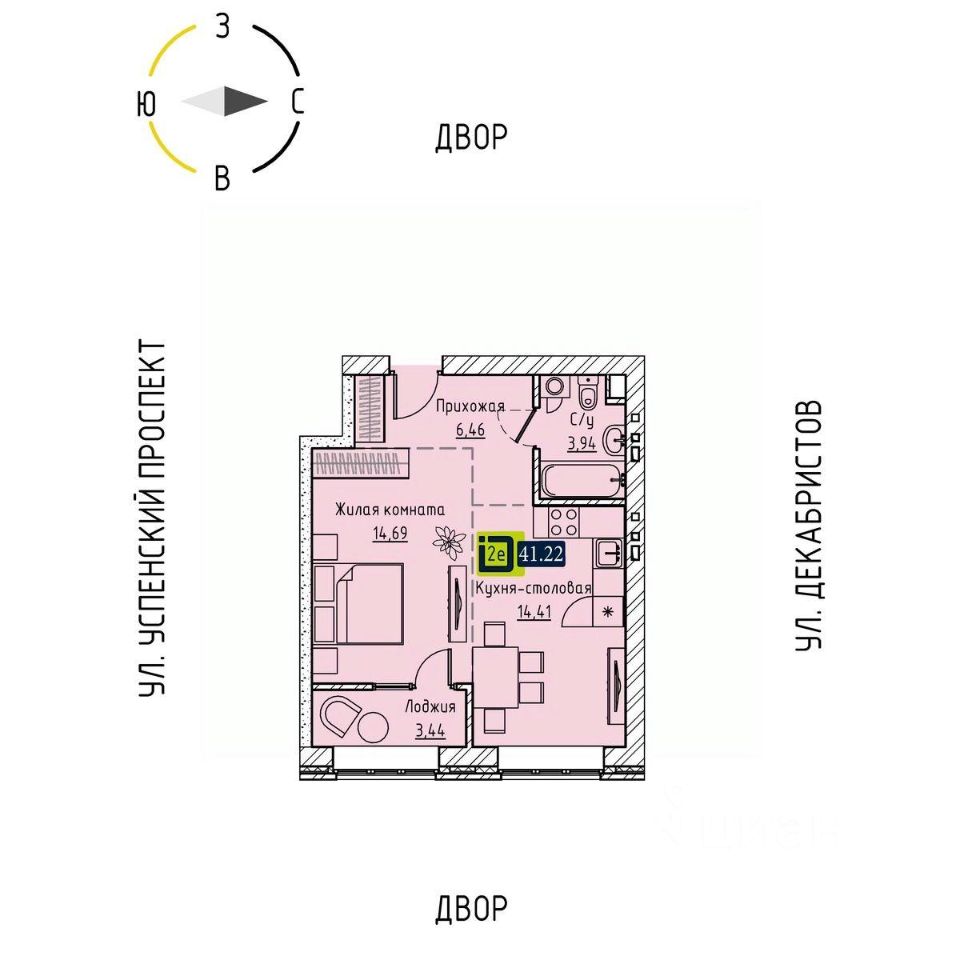 Общая площадь41,22 м2