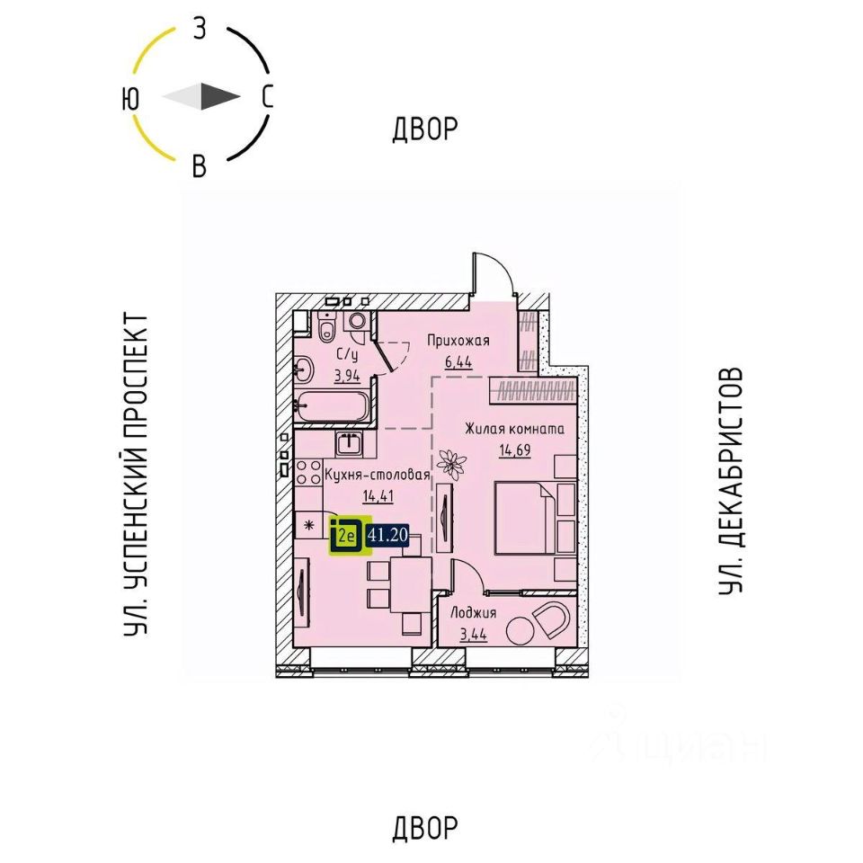 Общая площадь41,2 м2