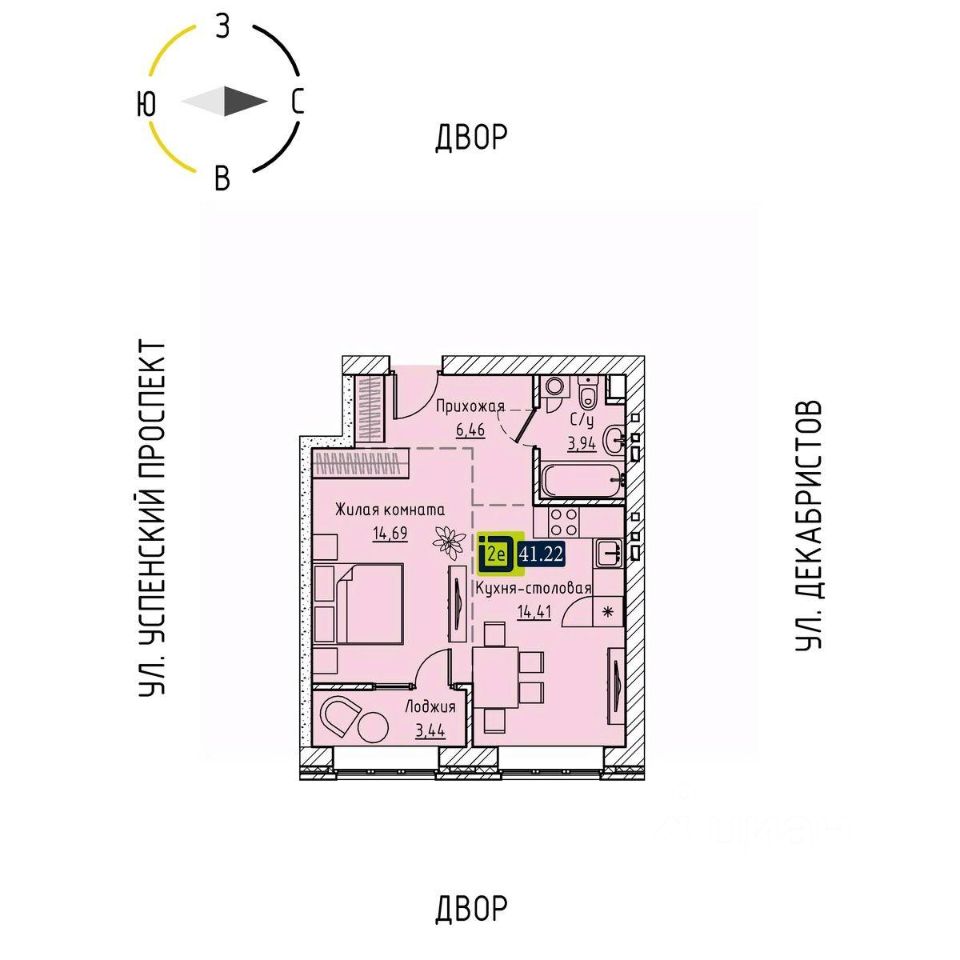 Общая площадь41,22 м2