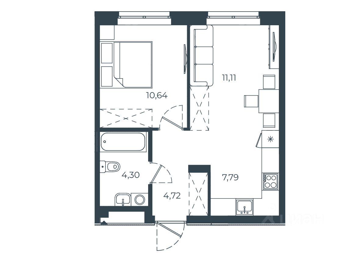 Общая площадь38,56 м2