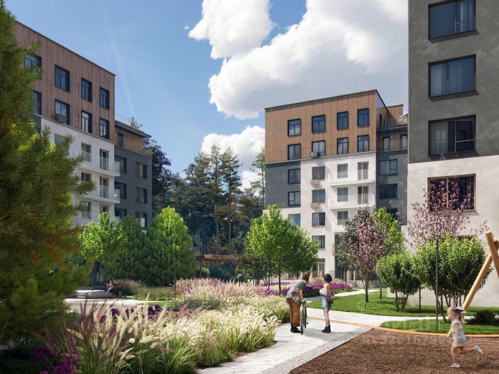 Живой квартал у леса Лес - главный герой квартала. Дома находятся в окружении соснового бора, а их этажность - до 8 этажей - не превышает крон сосен. В новом жилом комплексе большое внимание уделено заботе о сохранении деревьев и реализации специальных программ по высадке новых, чтобы жители наслаждались прекрасной растительностью каждый день.