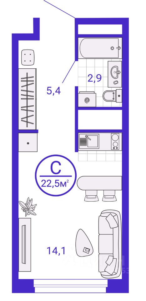 Общая площадь22,48 м2