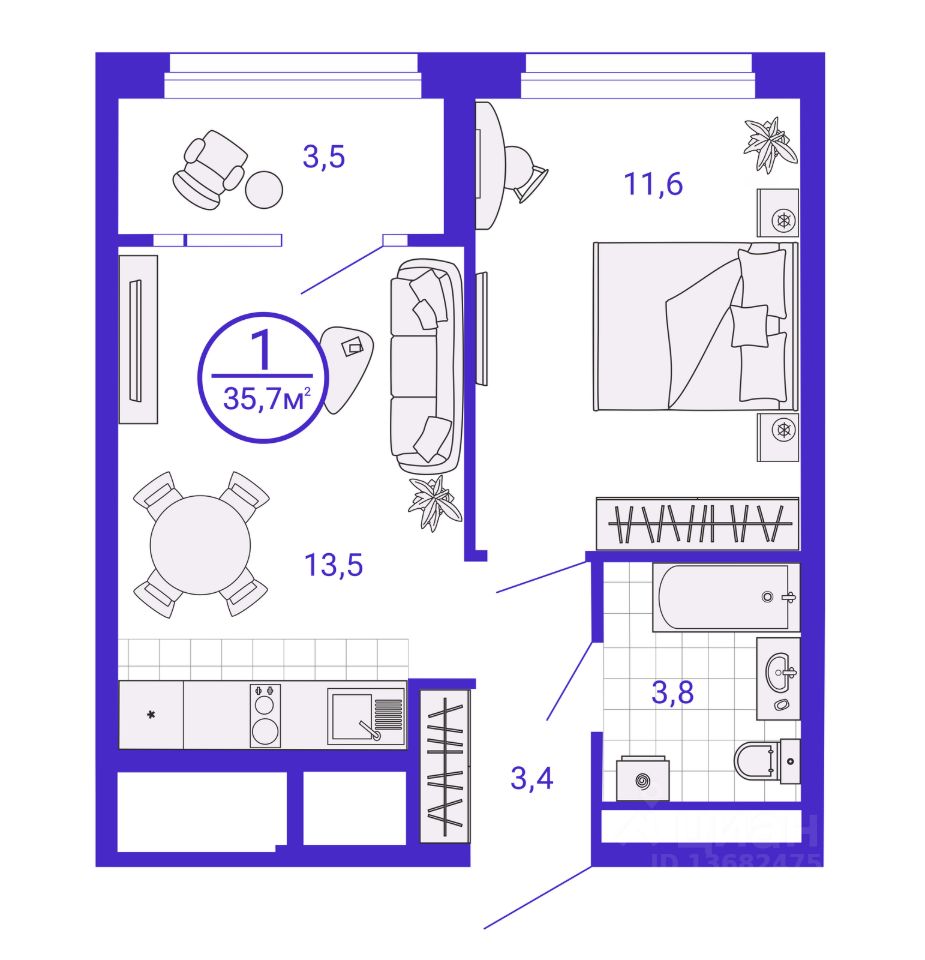 Жилая площадь11,6 м2