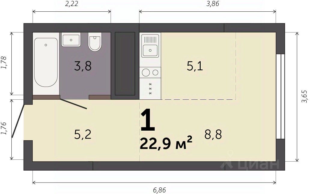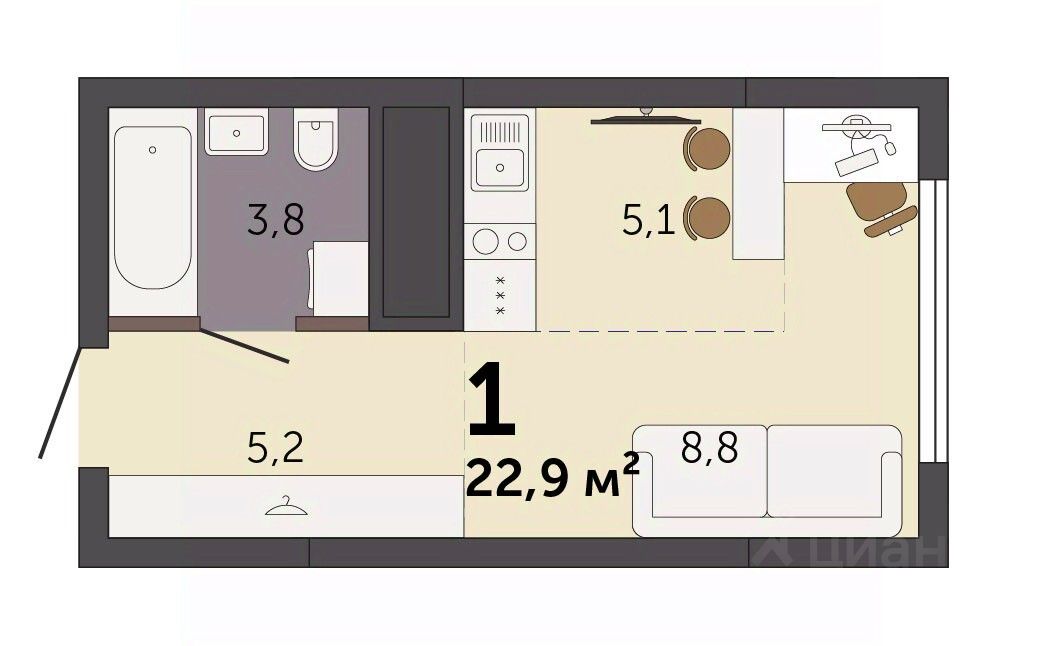 Продаётся студия в строящемся доме (Секция 1.1), срок сдачи: I-кв. 2028, общей площадью 22.9 кв.м., на 31 этаже. Новый жилой комплекс ''Парк Культуры'' от застройщика ''СЗ Новый Дом'' расположен по адресу: г. Екатеринбург, Базовый переулок.