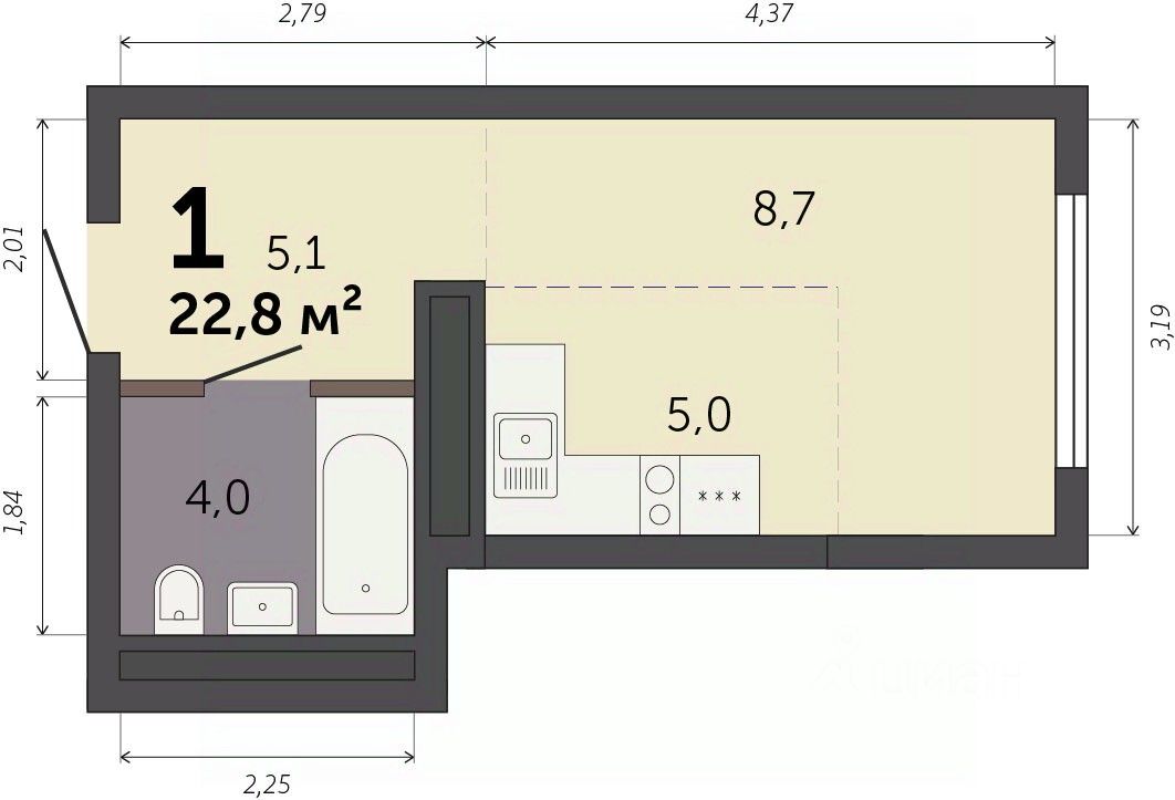 Продаётся студия в строящемся доме (Секция 1.1), срок сдачи: I-кв. 2028, общей площадью 22.8 кв.м., на 32 этаже. Новый жилой комплекс ''Парк Культуры'' от застройщика ''СЗ Новый Дом'' расположен по адресу: г. Екатеринбург, Базовый переулок.