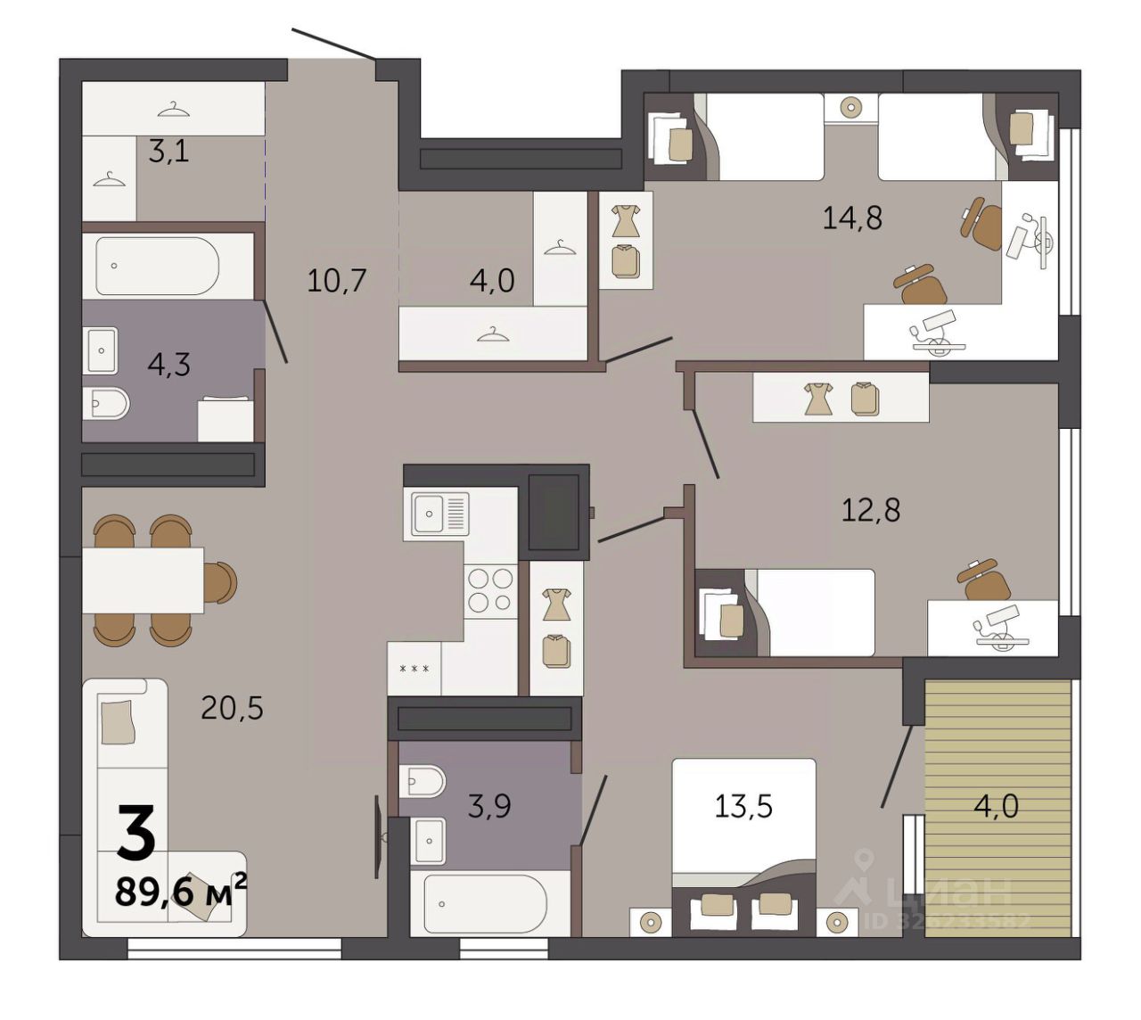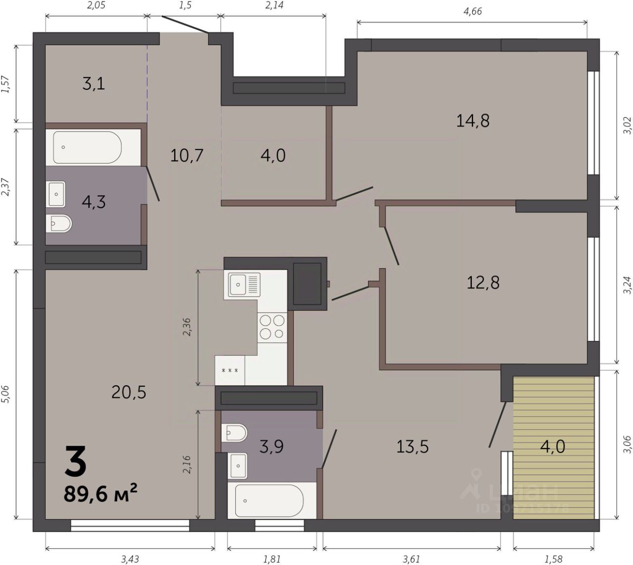 Продаётся 3-комнатная квартира в строящемся доме (Секция 1.1), срок сдачи: I-кв. 2028, общей площадью 89.6 кв.м., на 32 этаже. Новый жилой комплекс ''Парк Культуры'' от застройщика ''СЗ Новый Дом'' расположен по адресу: г. Екатеринбург, Базовый переулок.