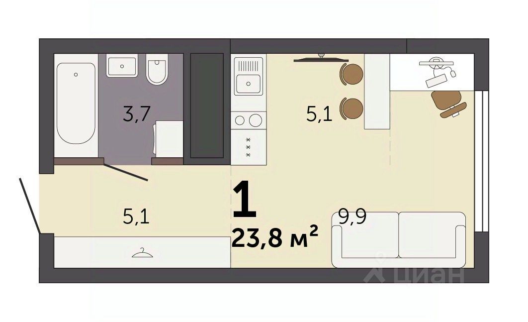 Продаётся студия в строящемся доме (Секция 1.1), срок сдачи: I-кв. 2028, общей площадью 23.8 кв.м., на 23 этаже. Новый жилой комплекс ''Парк Культуры'' от застройщика ''СЗ Новый Дом'' расположен по адресу: г. Екатеринбург, Базовый переулок.