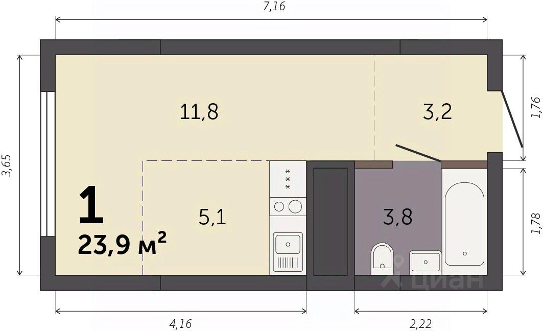 Продаётся студия в строящемся доме (Секция 1.1), срок сдачи: I-кв. 2028, общей площадью 23.9 кв.м., на 23 этаже. Новый жилой комплекс ''Парк Культуры'' от застройщика ''СЗ Новый Дом'' расположен по адресу: г. Екатеринбург, Базовый переулок.