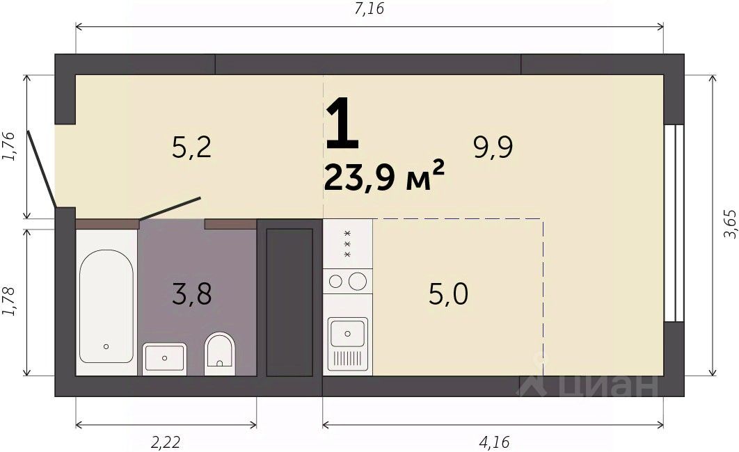 Продаётся студия в строящемся доме (Секция 1.1), срок сдачи: I-кв. 2028, общей площадью 23.9 кв.м., на 22 этаже. Новый жилой комплекс ''Парк Культуры'' от застройщика ''СЗ Новый Дом'' расположен по адресу: г. Екатеринбург, Базовый переулок.