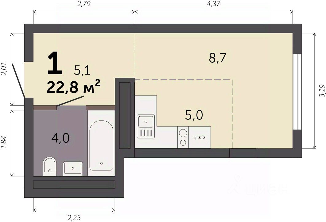 Продаётся студия в строящемся доме (Секция 1.1), срок сдачи: I-кв. 2028, общей площадью 22.8 кв.м., на 18 этаже. Новый жилой комплекс ''Парк Культуры'' от застройщика ''СЗ Новый Дом'' расположен по адресу: г. Екатеринбург, Базовый переулок.