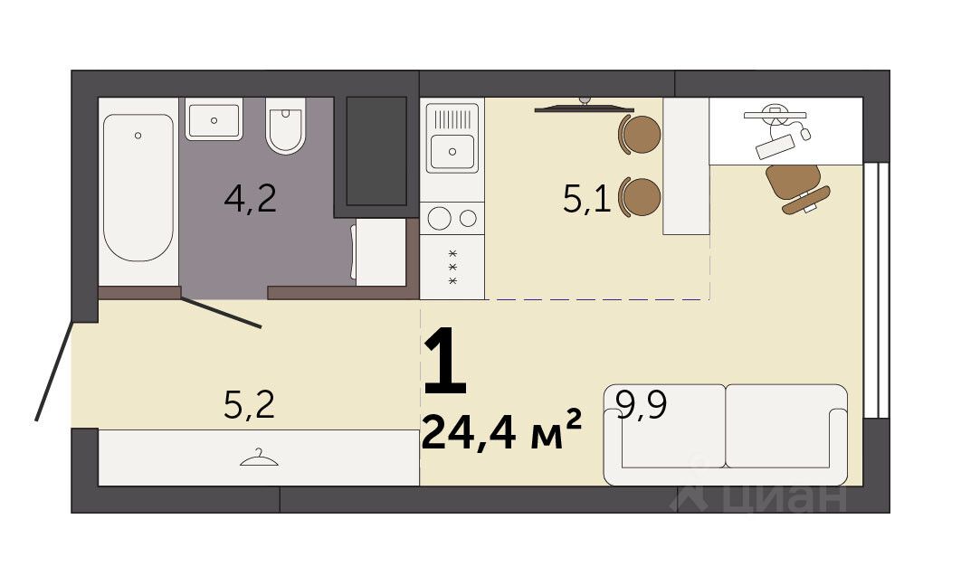 Продаётся студия в строящемся доме (Секция 1.1), срок сдачи: I-кв. 2028, общей площадью 24.4 кв.м., на 14 этаже. Новый жилой комплекс ''Парк Культуры'' от застройщика ''СЗ Новый Дом'' расположен по адресу: г. Екатеринбург, Базовый переулок.