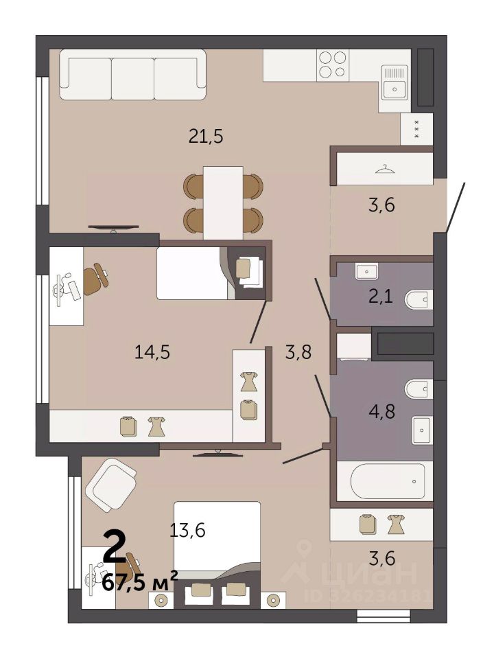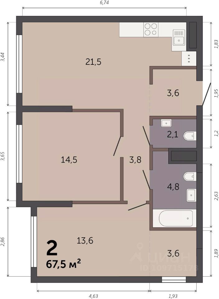 Продаётся 2-комнатная квартира в строящемся доме (Секция 1.1), срок сдачи: I-кв. 2028, общей площадью 67.5 кв.м., на 14 этаже. Новый жилой комплекс ''Парк Культуры'' от застройщика ''СЗ Новый Дом'' расположен по адресу: г. Екатеринбург, Базовый переулок.