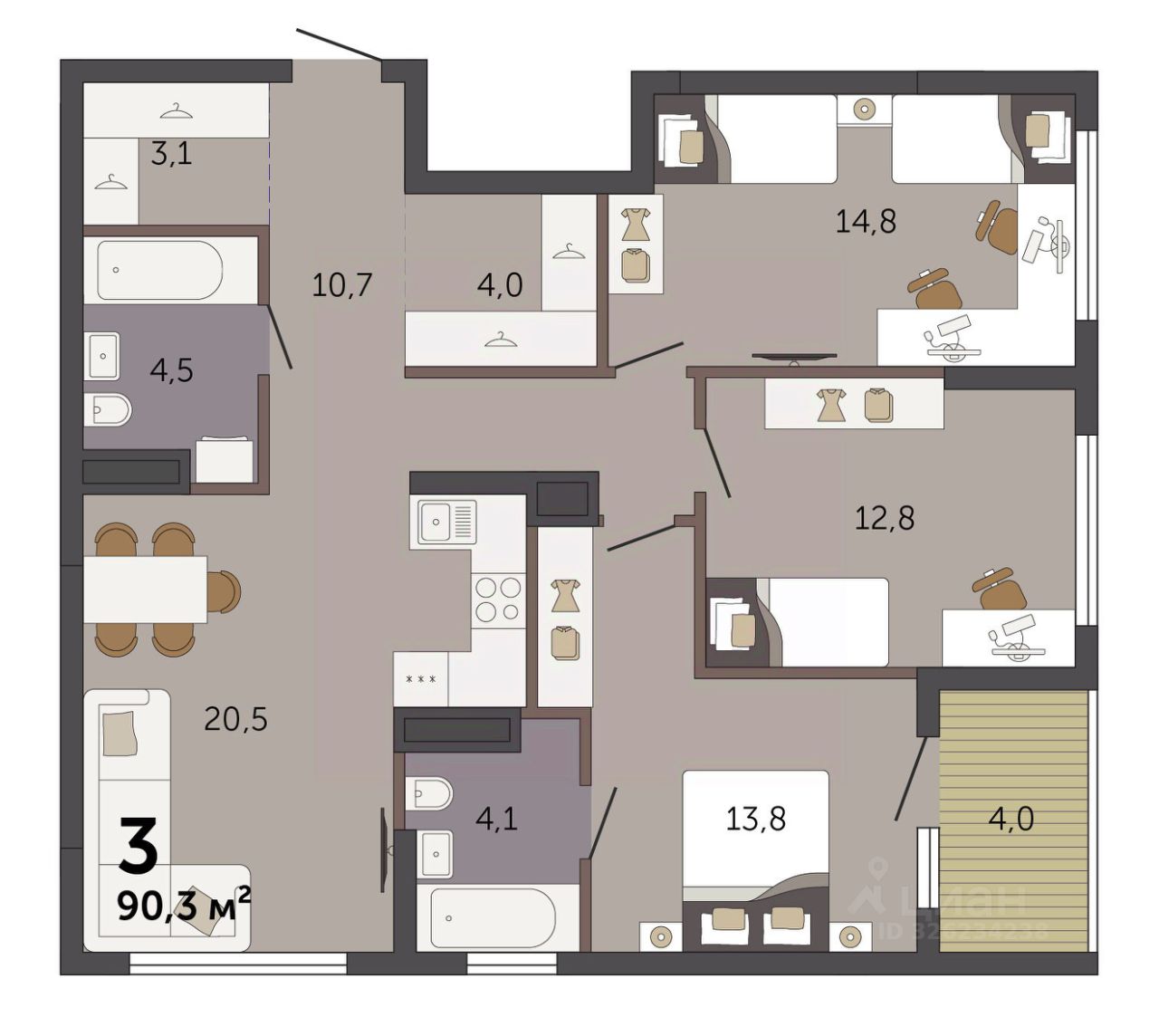 Продаётся 3-комнатная квартира в строящемся доме (Секция 1.1), срок сдачи: I-кв. 2028, общей площадью 90.3 кв.м., на 15 этаже. Новый жилой комплекс ''Парк Культуры'' от застройщика ''СЗ Новый Дом'' расположен по адресу: г. Екатеринбург, Базовый переулок.