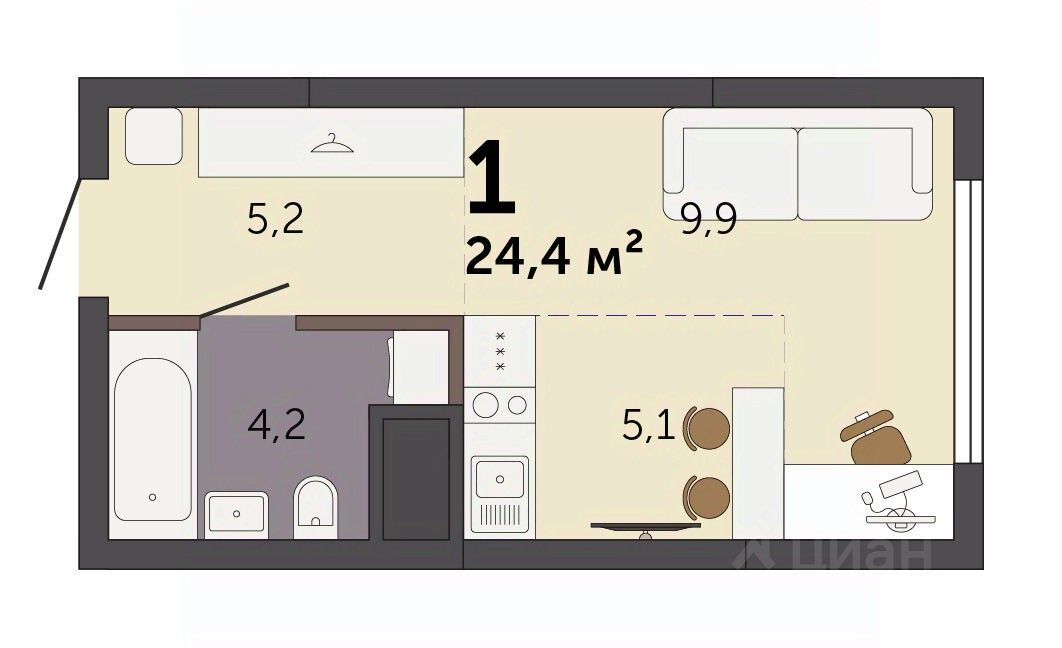 Продаётся студия в строящемся доме (Секция 1.1), срок сдачи: I-кв. 2028, общей площадью 24.4 кв.м., на 9 этаже. Новый жилой комплекс ''Парк Культуры'' от застройщика ''СЗ Новый Дом'' расположен по адресу: г. Екатеринбург, Базовый переулок.