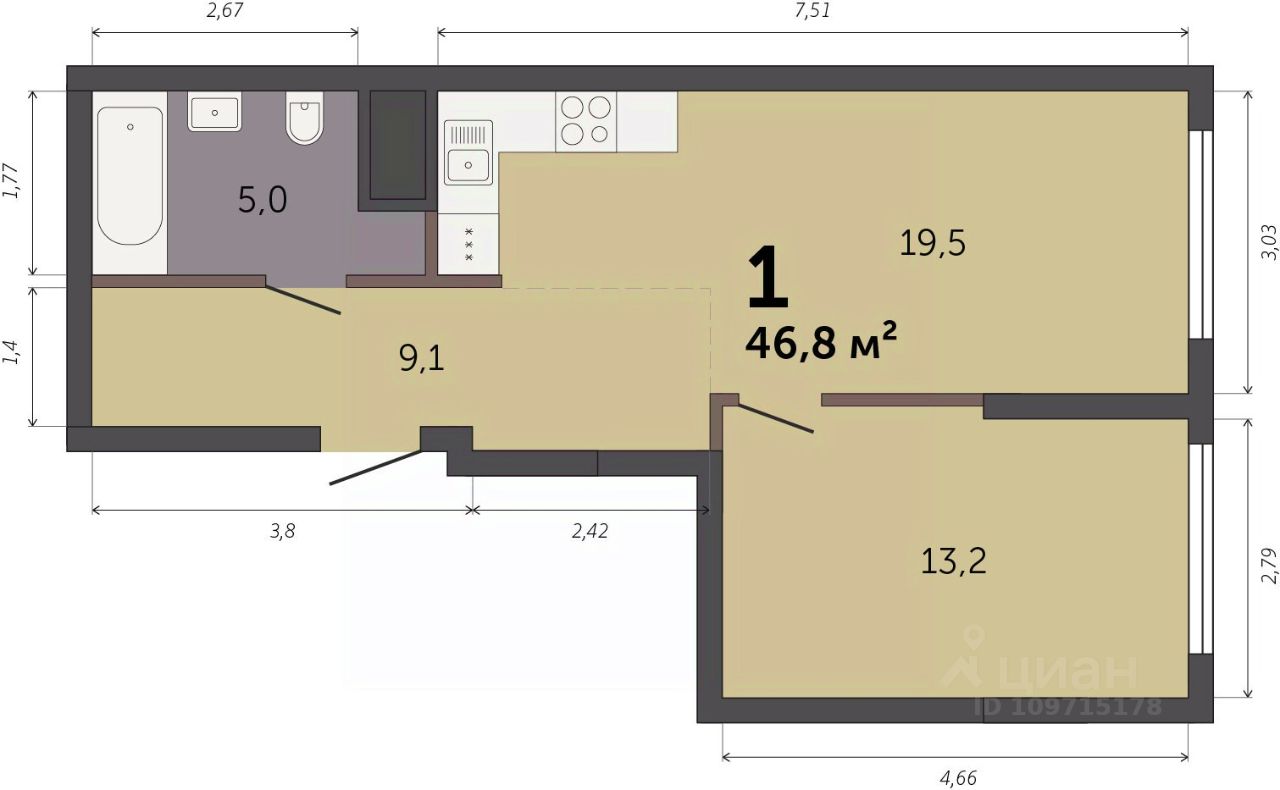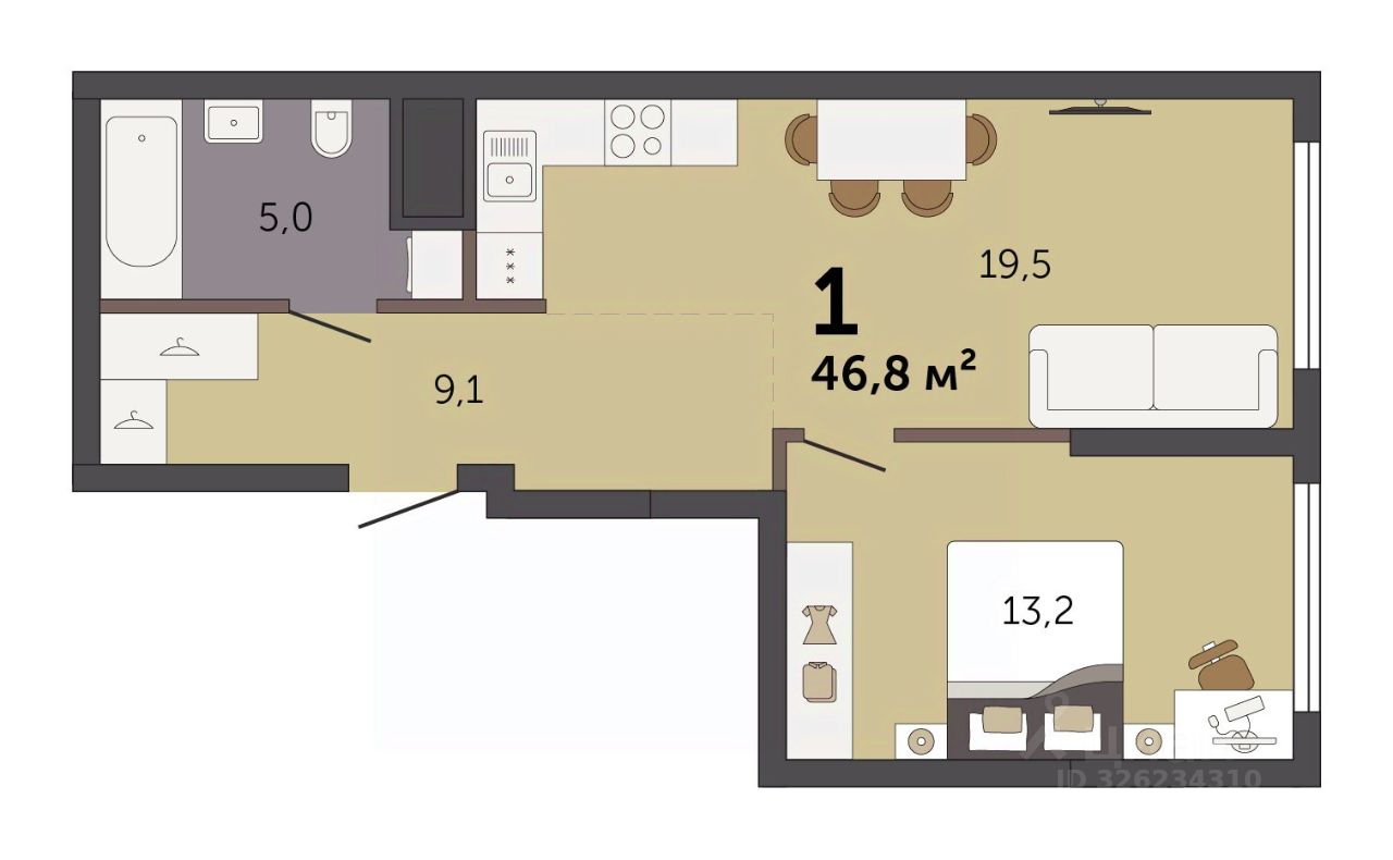 Продаётся 1-комнатная квартира в строящемся доме (Секция 1.1), срок сдачи: I-кв. 2028, общей площадью 46.8 кв.м., на 10 этаже. Новый жилой комплекс ''Парк Культуры'' от застройщика ''СЗ Новый Дом'' расположен по адресу: г. Екатеринбург, Базовый переулок.