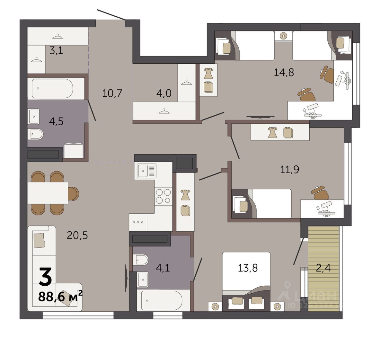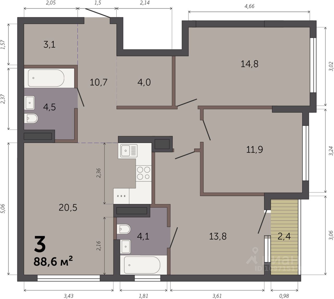 Продаётся 3-комнатная квартира в строящемся доме (Секция 1.1), срок сдачи: I-кв. 2028, общей площадью 88.6 кв.м., на 6 этаже. Новый жилой комплекс ''Парк Культуры'' от застройщика ''СЗ Новый Дом'' расположен по адресу: г. Екатеринбург, Базовый переулок.