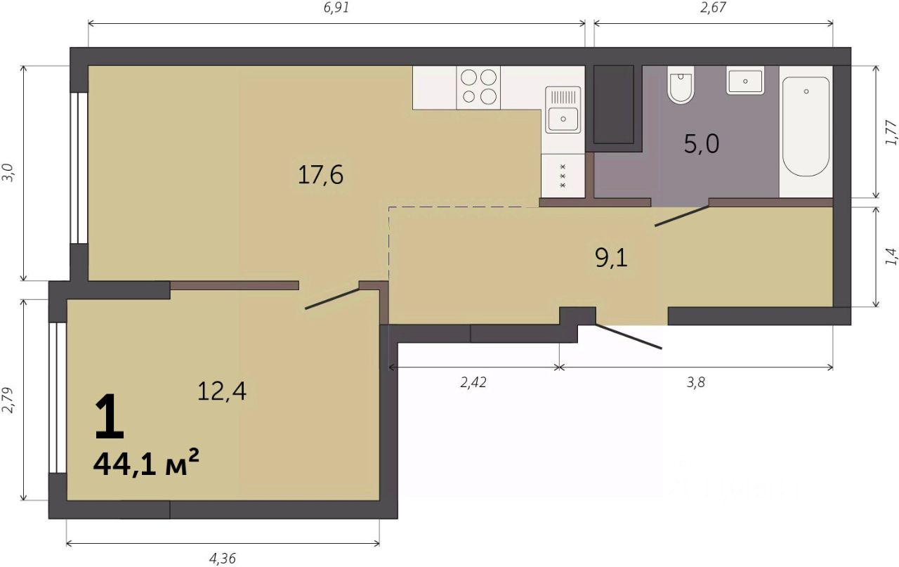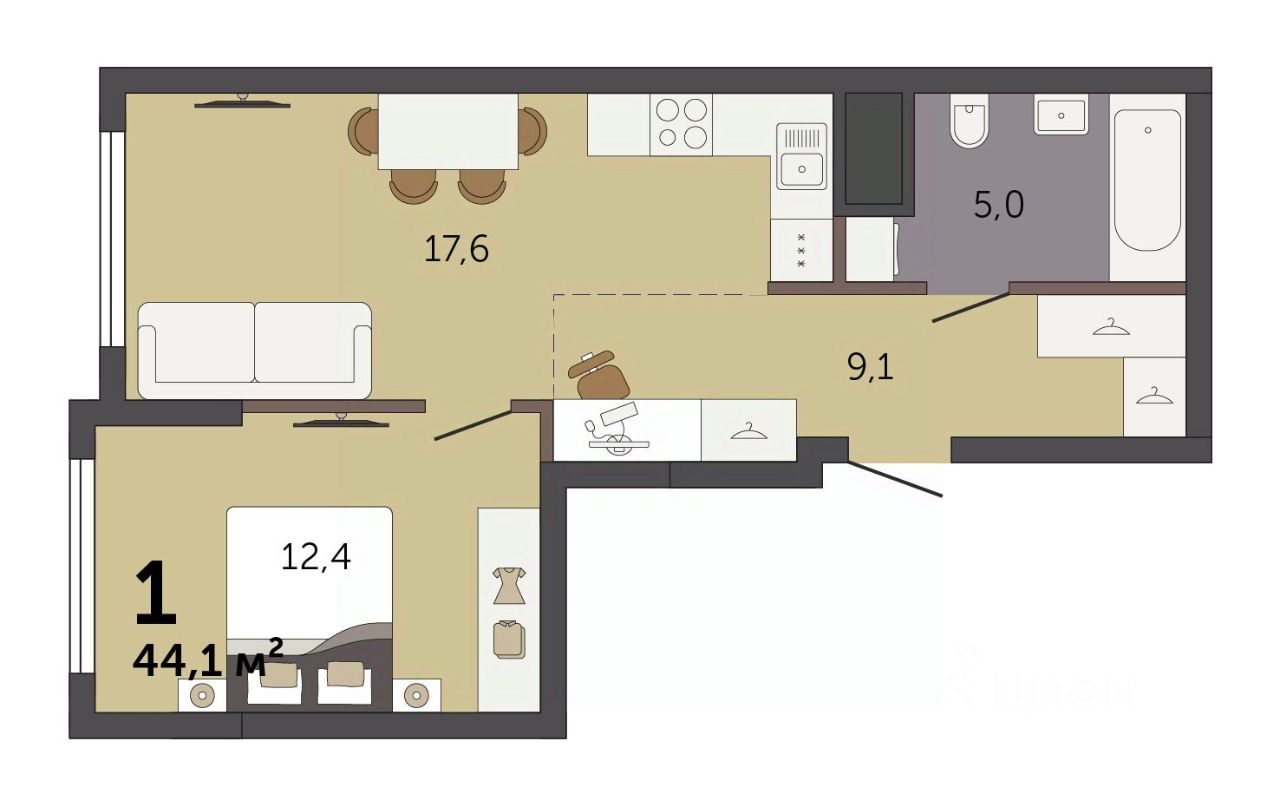 Продаётся 1-комнатная квартира в строящемся доме (Секция 1.1), срок сдачи: I-кв. 2028, общей площадью 44.1 кв.м., на 6 этаже. Новый жилой комплекс ''Парк Культуры'' от застройщика ''СЗ Новый Дом'' расположен по адресу: г. Екатеринбург, Базовый переулок.