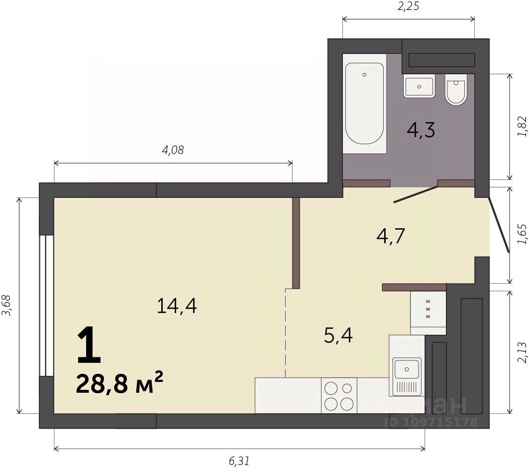 Продаётся студия в строящемся доме (Секция 1.1), срок сдачи: I-кв. 2028, общей площадью 28.8 кв.м., на 6 этаже. Новый жилой комплекс ''Парк Культуры'' от застройщика ''СЗ Новый Дом'' расположен по адресу: г. Екатеринбург, Базовый переулок.