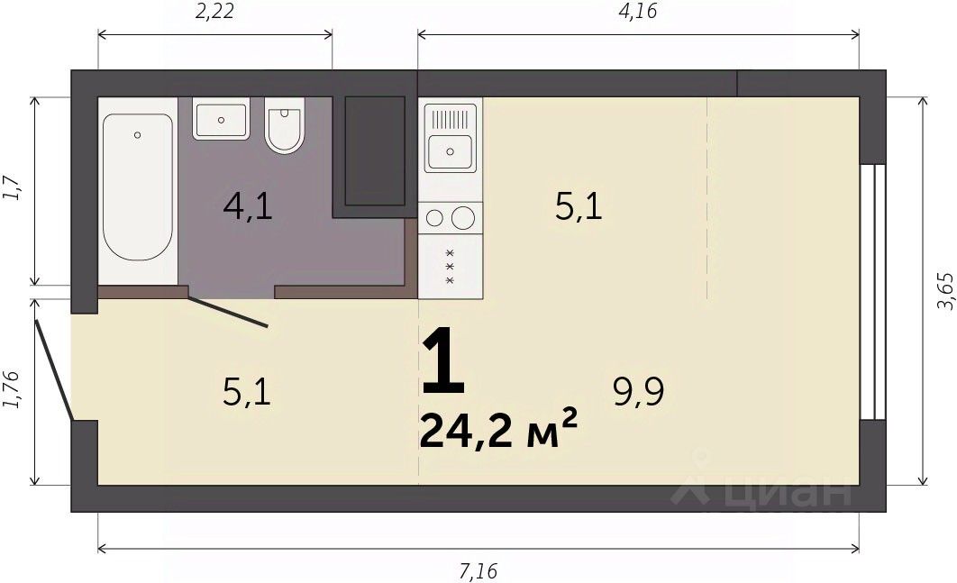 Продаётся студия в строящемся доме (Секция 1.1), срок сдачи: I-кв. 2028, общей площадью 24.2 кв.м., на 7 этаже. Новый жилой комплекс ''Парк Культуры'' от застройщика ''СЗ Новый Дом'' расположен по адресу: г. Екатеринбург, Базовый переулок.