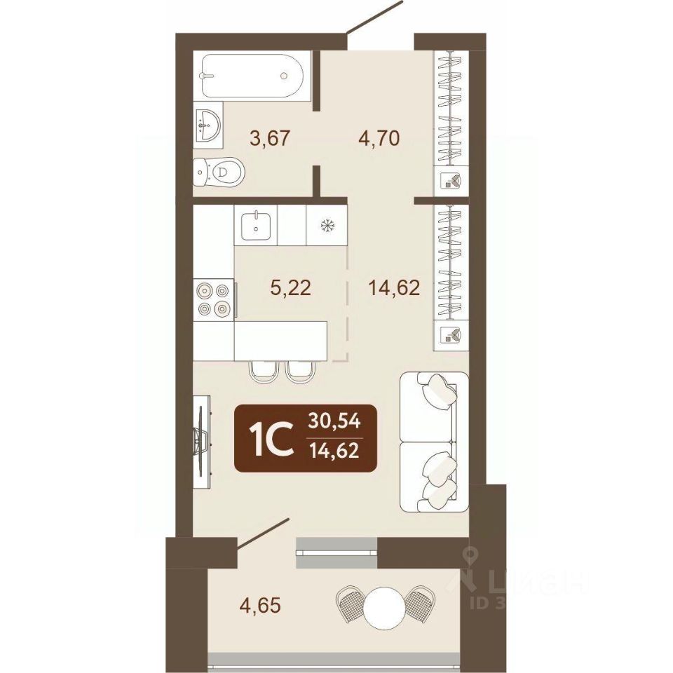 Общая площадь30,54 м2
