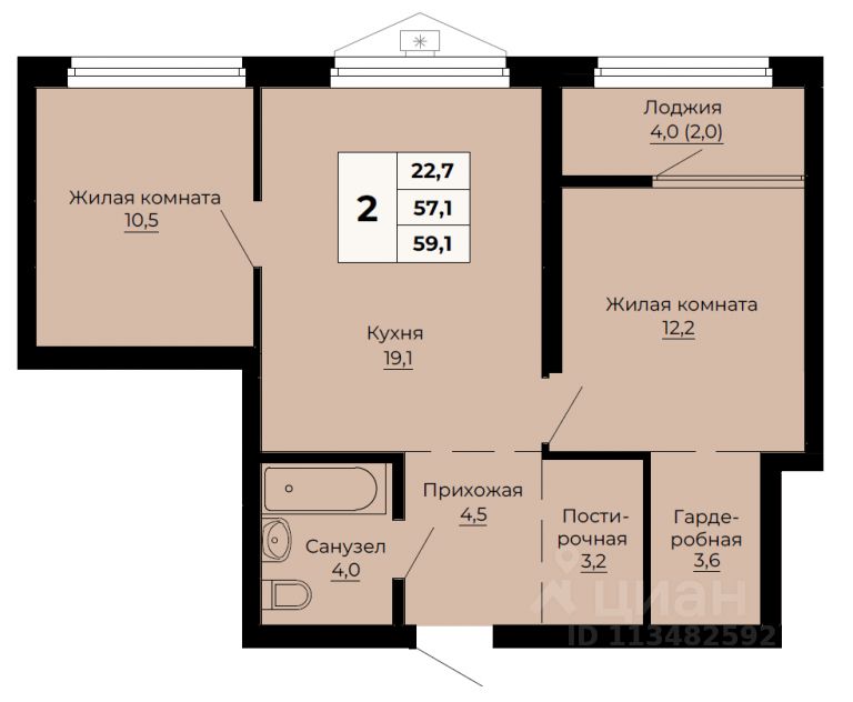 Общая площадь59,1 м2