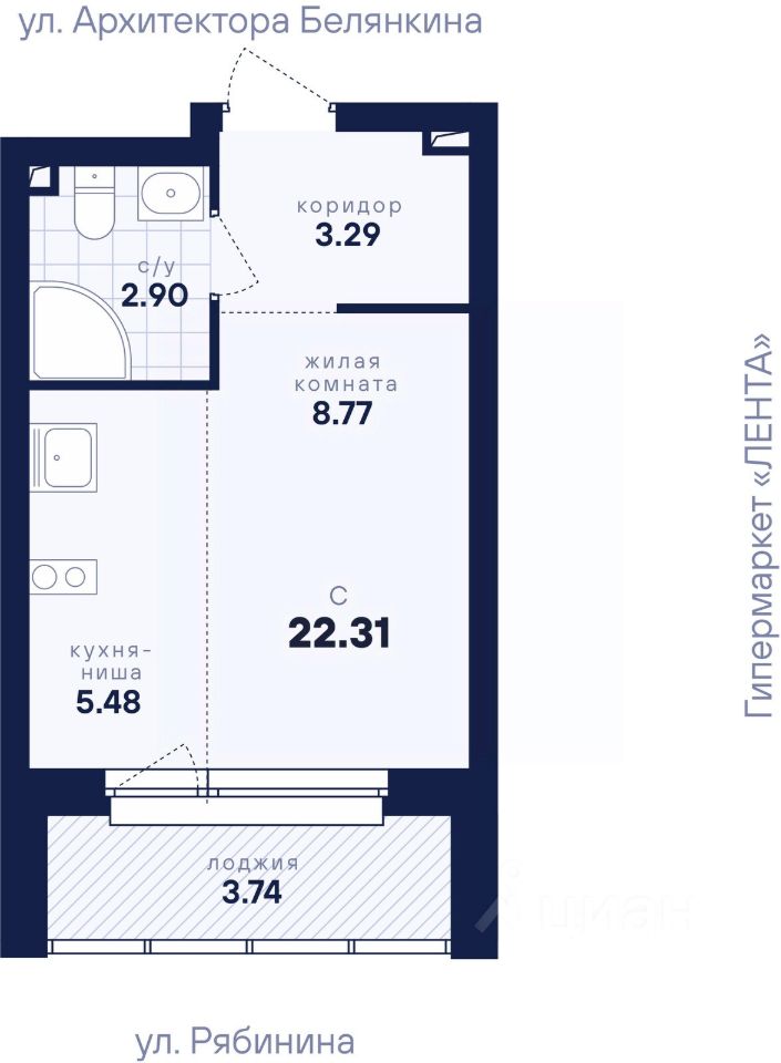 Общая площадь22,31 м2