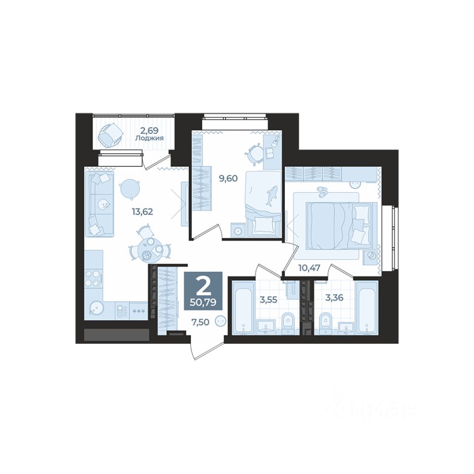 Общая площадь50,79 м2