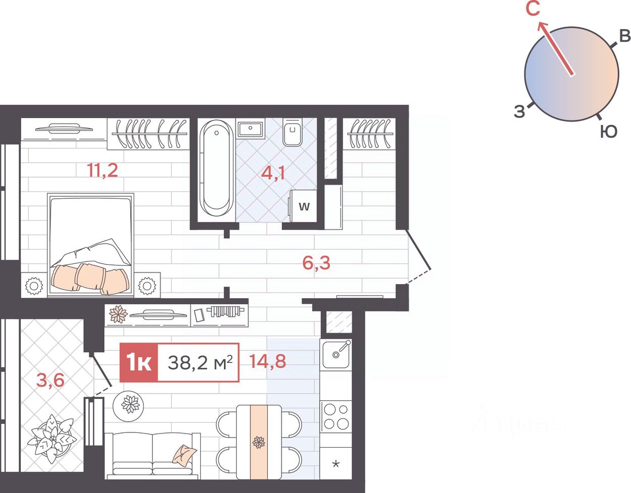 Общая площадь38,2 м2