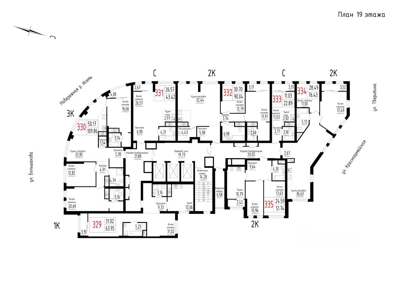 Продаётся 2-комнатная квартира в строящемся доме (Дом 1 секции 1-2), срок сдачи: II-кв. 2026, общей площадью 90.04 кв.м., на 19 этаже. Новый жилой комплекс ''Лувр'' от застройщика ''СЗ Нижнеисетский пруд'' расположен по адресу: г. Екатеринбург, улица Большакова.