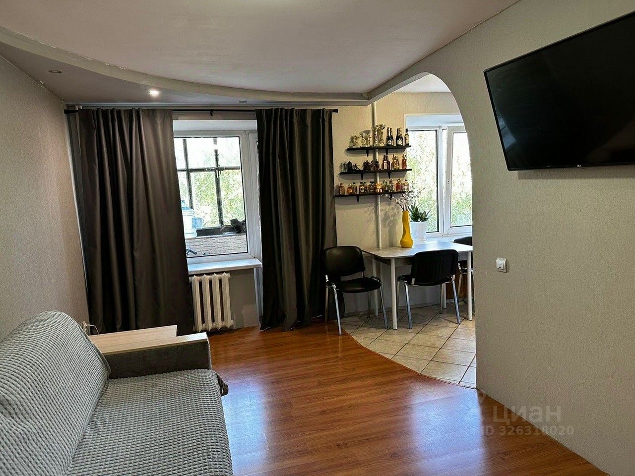 Квартира находится на 4 этаже. Пластиковые окна, сейф дверь, натяжные потолки, ламинат все как на фото. Заменена электропроводка, установлены счетчики. Санузел весь в кафеле.