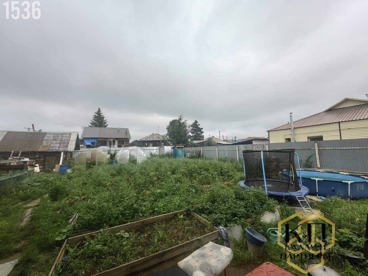 Имеется ограда, гараж а также хозяйственные постройки для хранения инструментов и инвентаря.