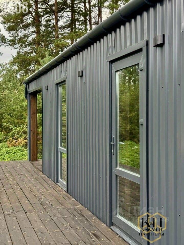 Планировка дома представляет собой: кухню-гостиную с панорамным остеклением и видом на лес (а также с уже установленным кухонным гарнитуром), 2 жилые комнаты, санузел, кладовая/прачечная, просторная прихожая.
