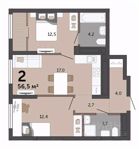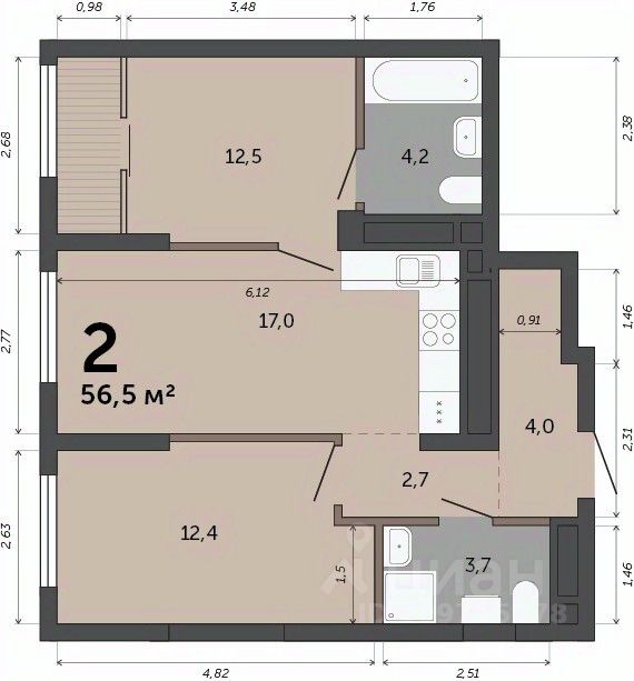 Общая площадь56,5 м2