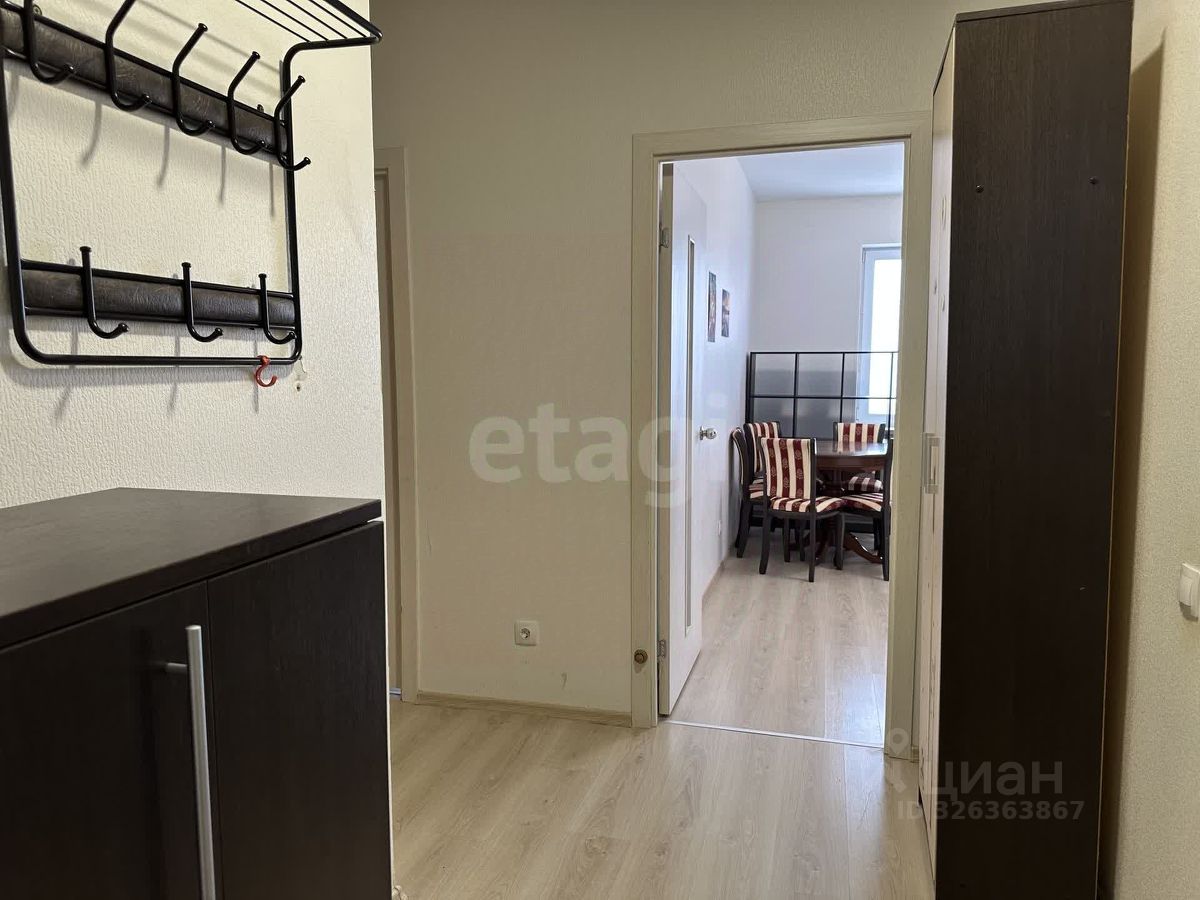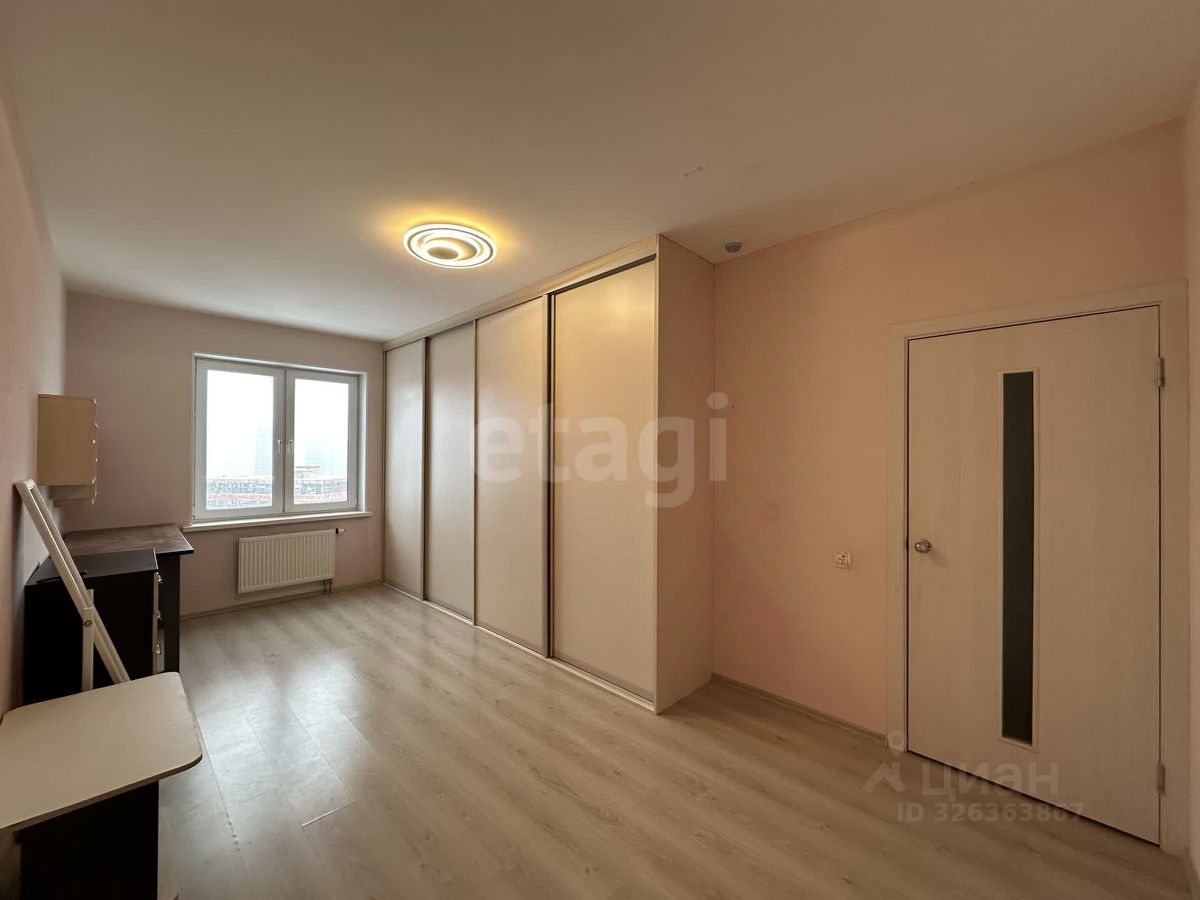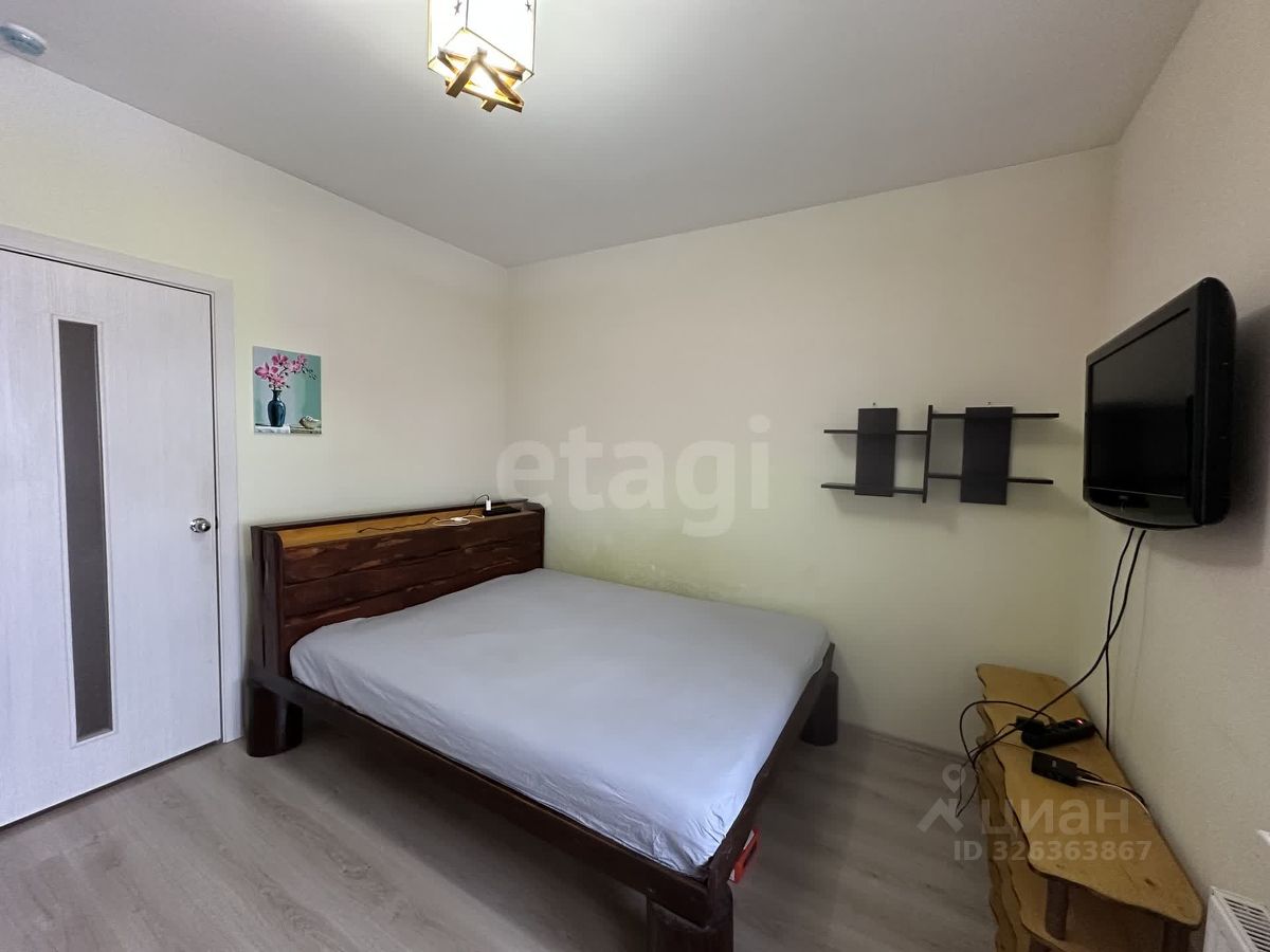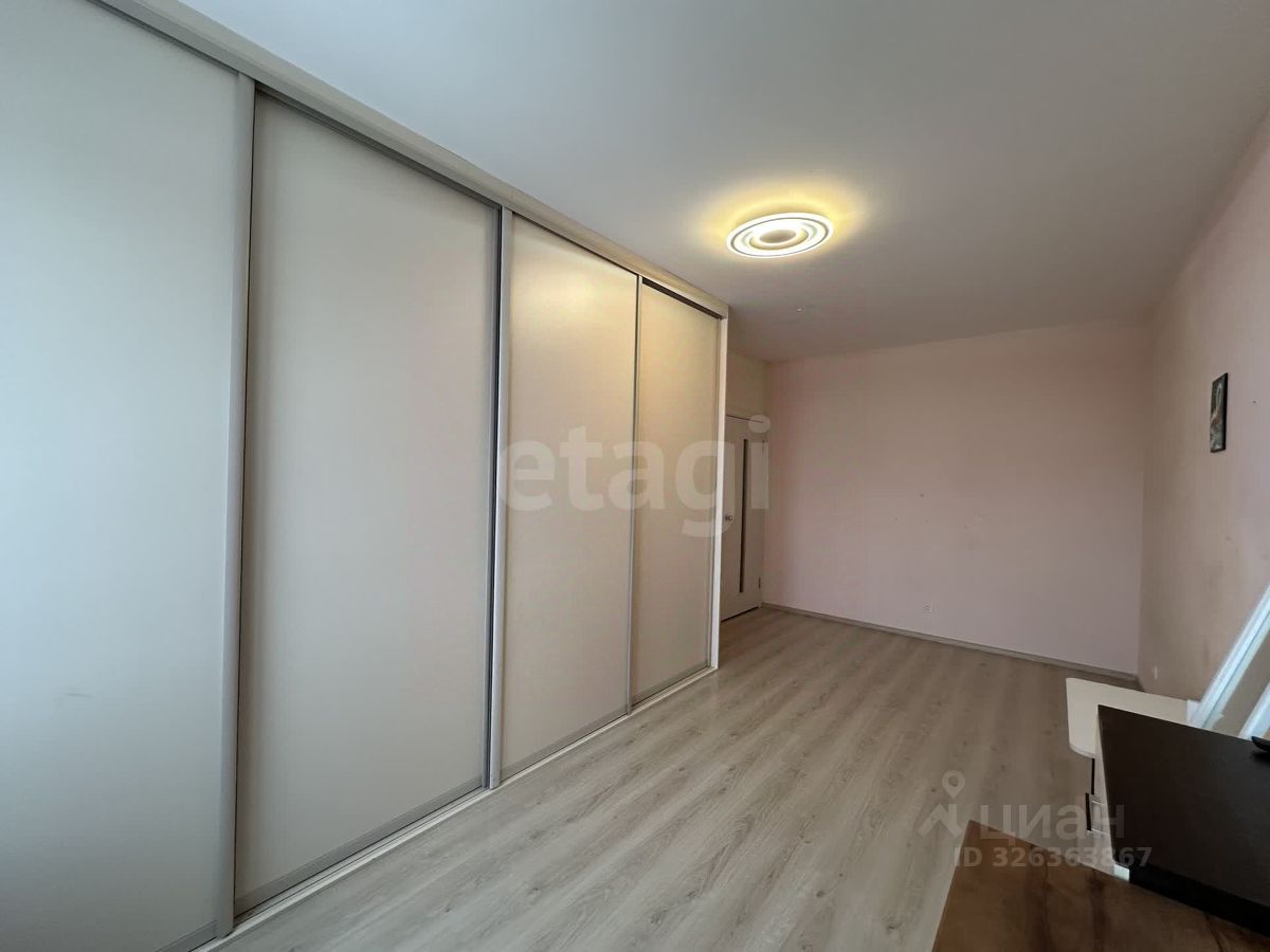 В квартире ремонт от застройщика, на полу ламинат, окна пластиковые. На кухне установлен кухонный гарнитур со всей необходимой встроенной техникой, качественный деревянный обеденный стол со стульями. В спальне двуспальная кровать и полки ручной работы из массива дерева. Есть два больших встроенных шкафа для хранения. Санузел совмещенный 4,6 м2, пол в плитке, на стенах водоэмульсионная краска, есть ниша для хранения бытовой химии.