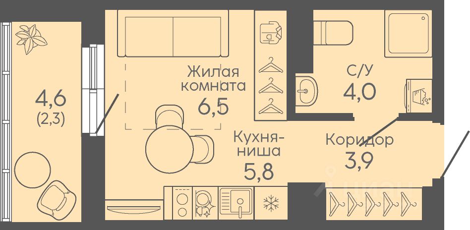 Общая площадь22,5 м2