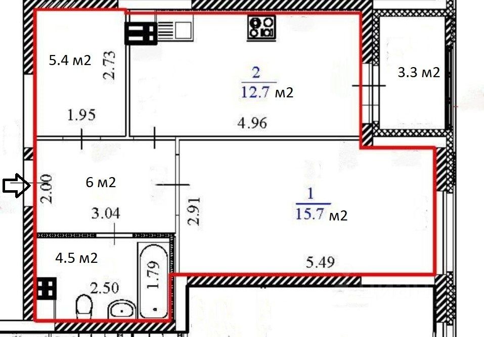 Дом 2023 года постройки, соседи тихие, в квартире ремонт от застройщика, по планировке вместительная кухня, спальная комната, санузел совмещённый, есть отдельная комната 5.4 м2 без окна, можно использовать как гардеробную или кабинет.