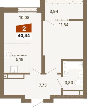 Общая площадь40,44 м2