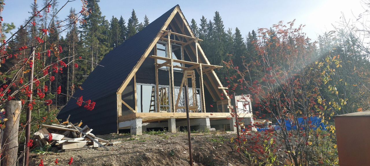 Продам готовый к чистовой отделке А-Фрейм Дом 2 этажа 140м2 отличный видовой участок на водохранилище. Электричество 15квт. Септик. Земля в собственности Ижс. Бетонный фундамент. На участке установлена каркасная баня 40м2. Есть проект на дом и ландшафтный дизайн. Получили договор на подключение газа.