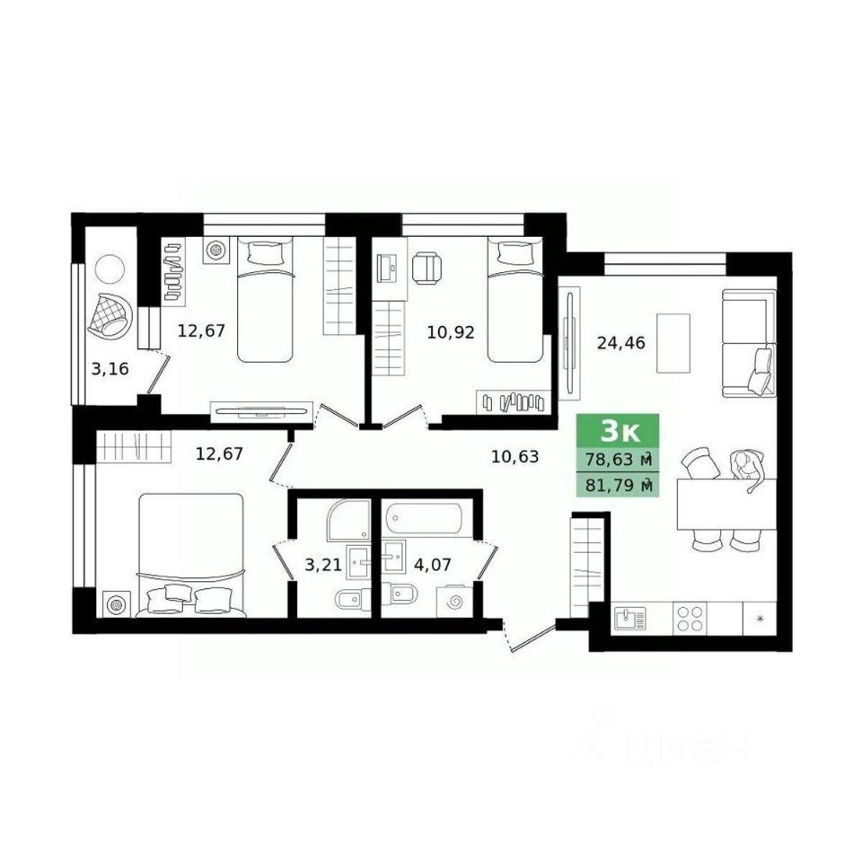 продам 3-к, Монтерская, 15/1 стр.12 903 000 ₽